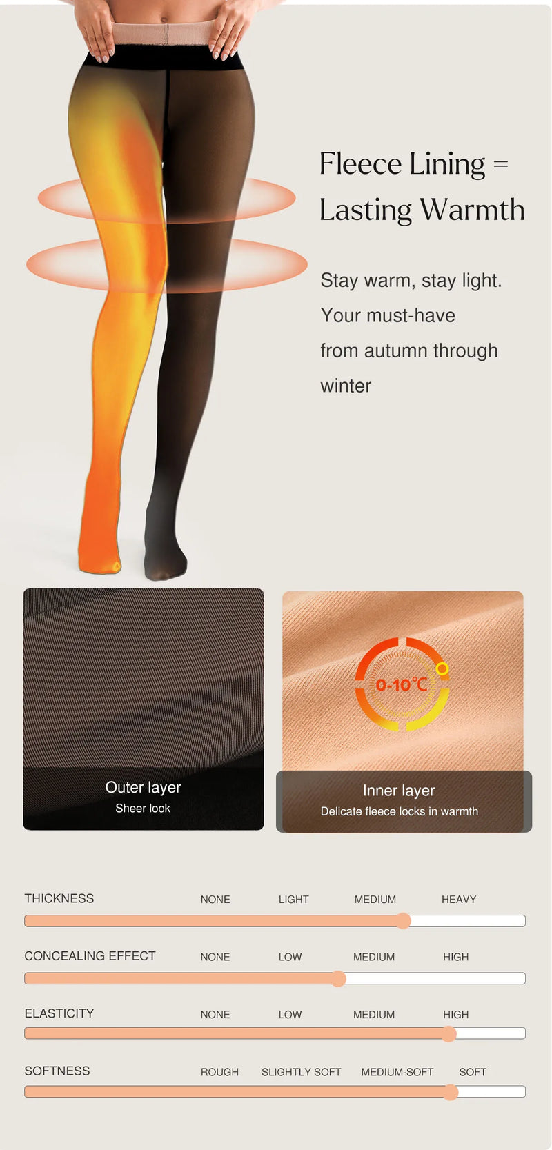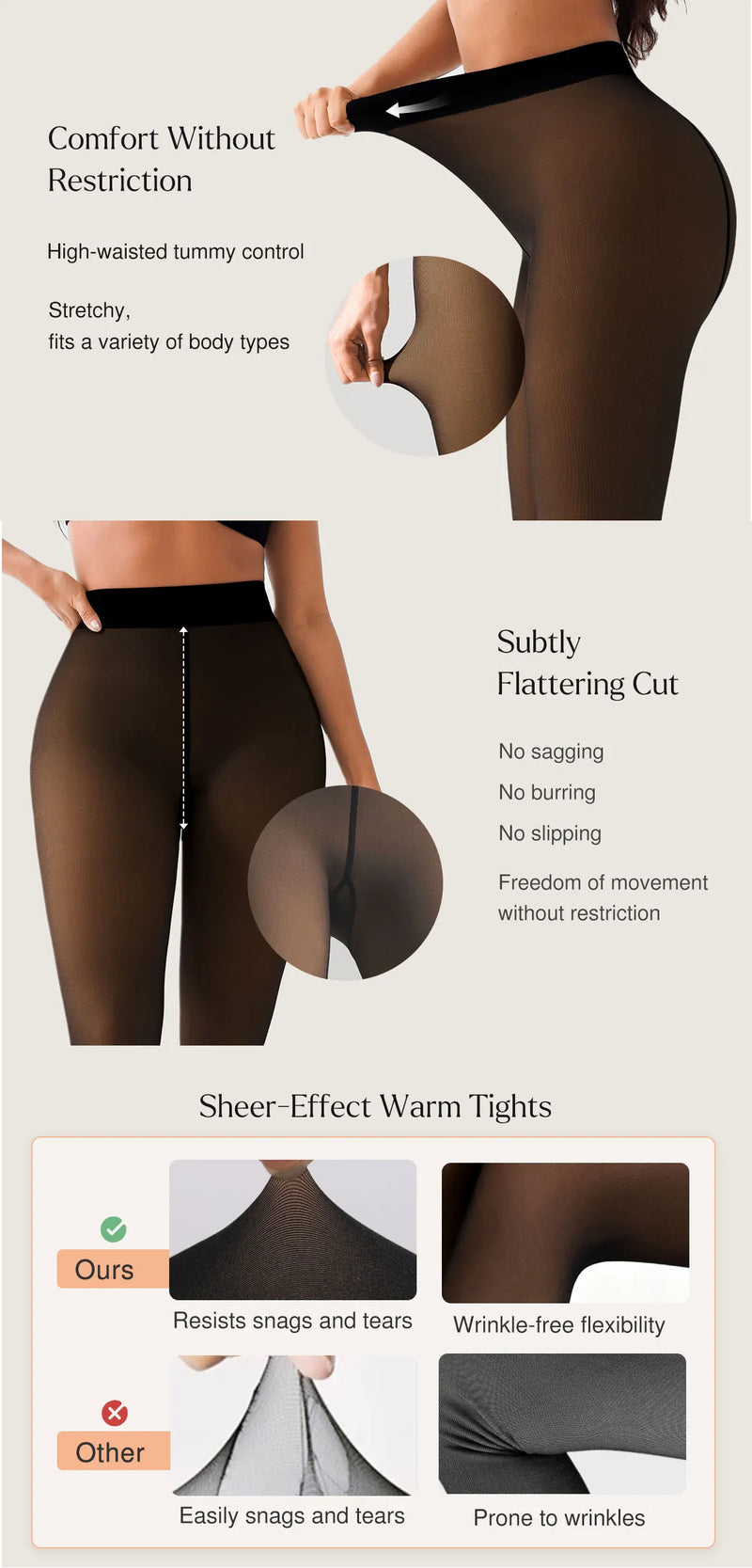These tights create a slimming, skin-like effect that enhances the shape of your legs. They combine a sheer look with a plush inner lining for warmth without bulk, making them an essential for cooler weather. The high-waist design and extended gusset ensure a comfortable, secure fit that allows for complete freedom of movement.