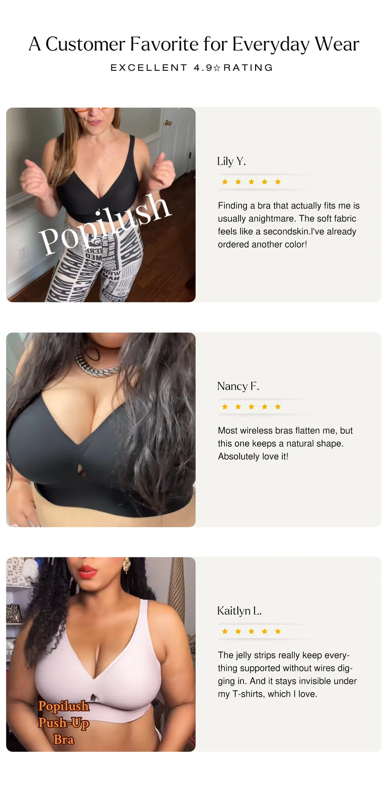 • Versatile Deep-V: Suits low-cut outfits, showcasing your bust.